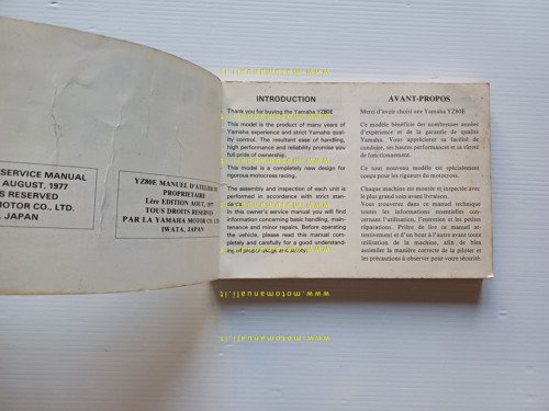 Yamaha YZ 80 2J5 1977 manuale uso manutenzione libretto originale inglese
