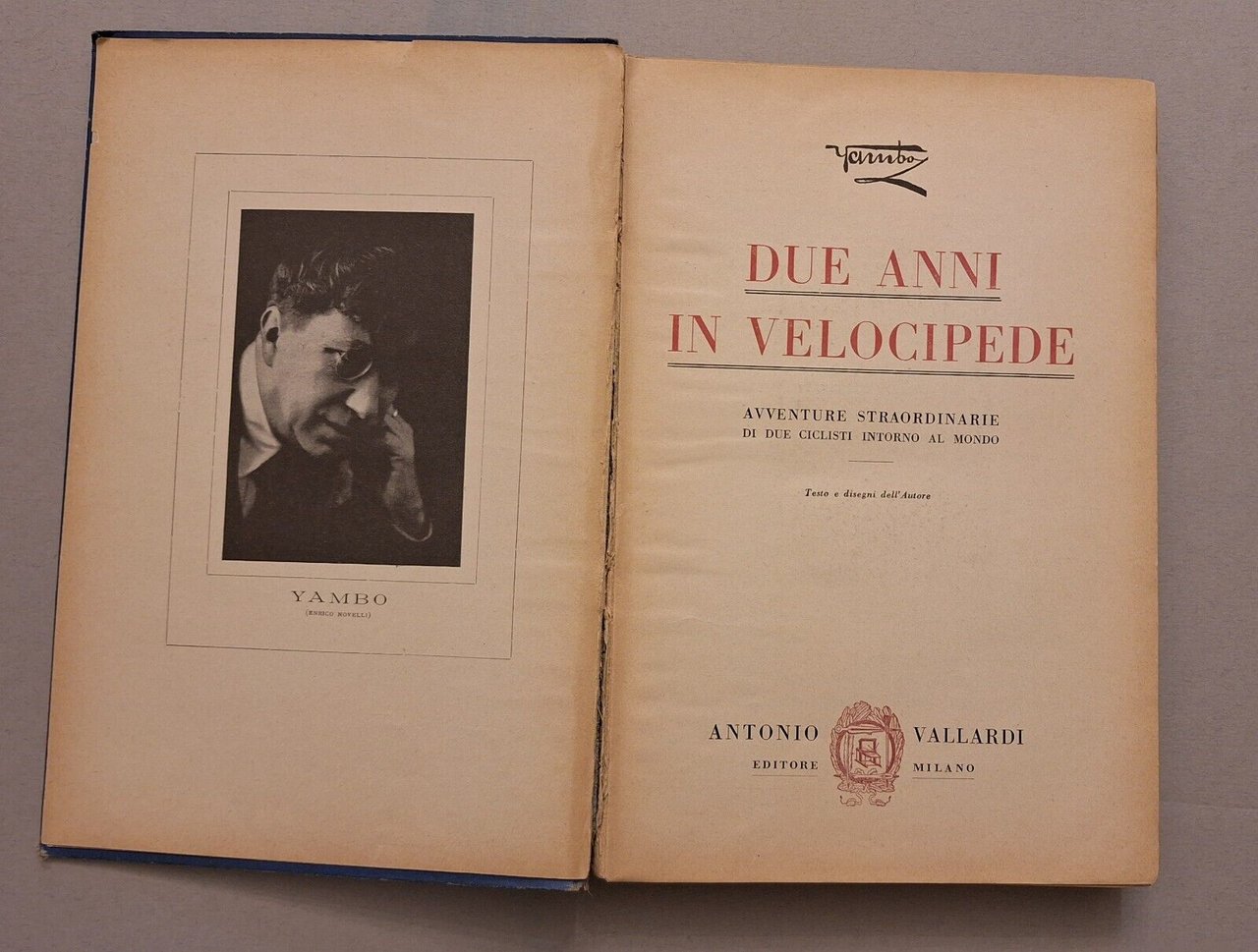 YAMBO DUE ANNI IN VELOCIPEDE VALLARDI ED. 1929In 8° grande, legatura editoriale, copertina telata illustrata, ill. in b/n.Taglio alla cerniera alla prima e parzialmente alla quarta di copertina. Lievissima allentatura. Pagine fresche e pulite.