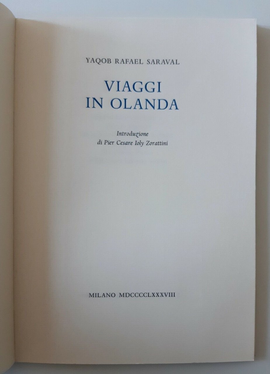 YAQOB RAFAEL SARAVAL VIAGGI IN OLANDA EDIZIONI IL POLIFILO STAMPERIA VALDONEGA COI CARATTERI DELLA SERIE DANTE DISEGNATA DA GIOVANNI MARDERSTEIG 1988