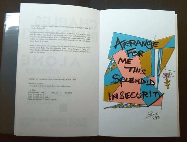- Printed August 1986 in Santa Barbara & Ann Arbor for the Black Sparrow Press by Graham Mackintosh & Edwards Brothers Inc. Design by Barbara Martin.