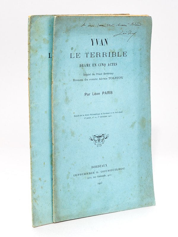 Extrait de la Revue Philomatique de Bordeaux et du Sud-Ouest, 2 brochures in-8, Imprimerie G. Gounouilhou, Bordeaux, 1903, 16 et 19 pp. Rare exemplaire de ces deux tirés à part (proposant les deux premiers actes), dédicacé par l'auteur.