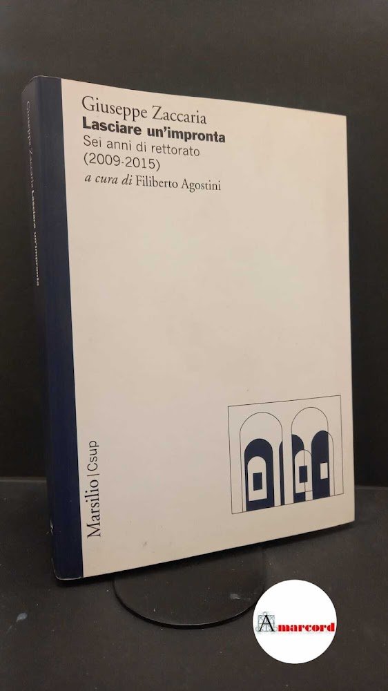 854 Zaccaria, Giuseppe Zaccaria, Giuseppe. , and Agostini, Filiberto. Lasciare un'impronta : sei anni di rettorato (2009-2015). Venezia Marsilio, 2020 con dedica dell'autore a noto giornalista. , Marsilio 2020 italiano, in ottavo 551 10792