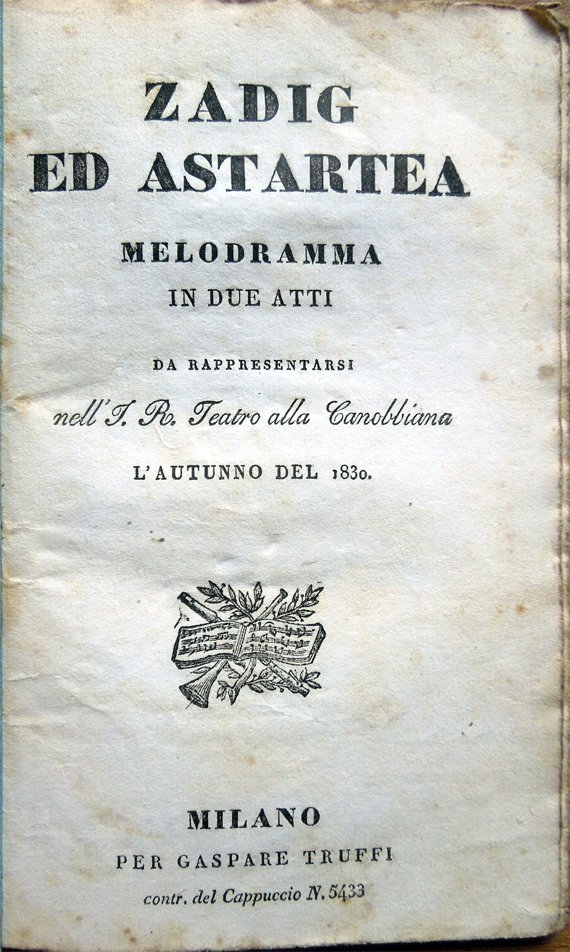 Zadig ed Astartea. Melodramma in due atti da rappresentarsi nell'I. R. Teatro alla Canobbiana l'autunno del 1830