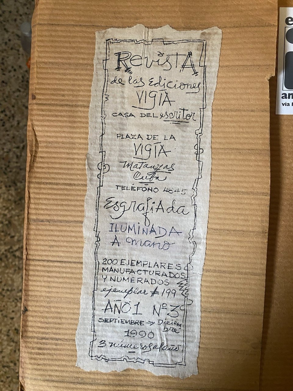 Ediciones Vigia Casa del Escritor In 4° legatura editoriale I° edizione Tiratura 200 esemplari numerati esemplare numero 199 Deseno Rolando Esteve Applicato ex-libris Ottimo stato