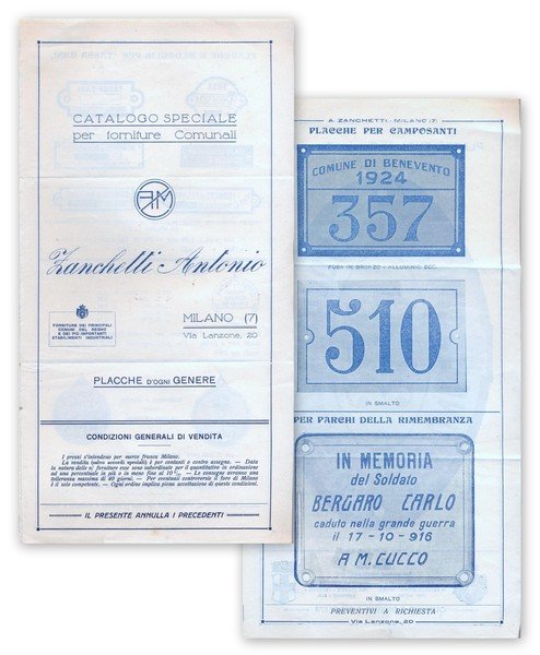 Zanchetti Antonio Milano. Catalogo speciale per forniture comunali. Depliant pubblicitario.