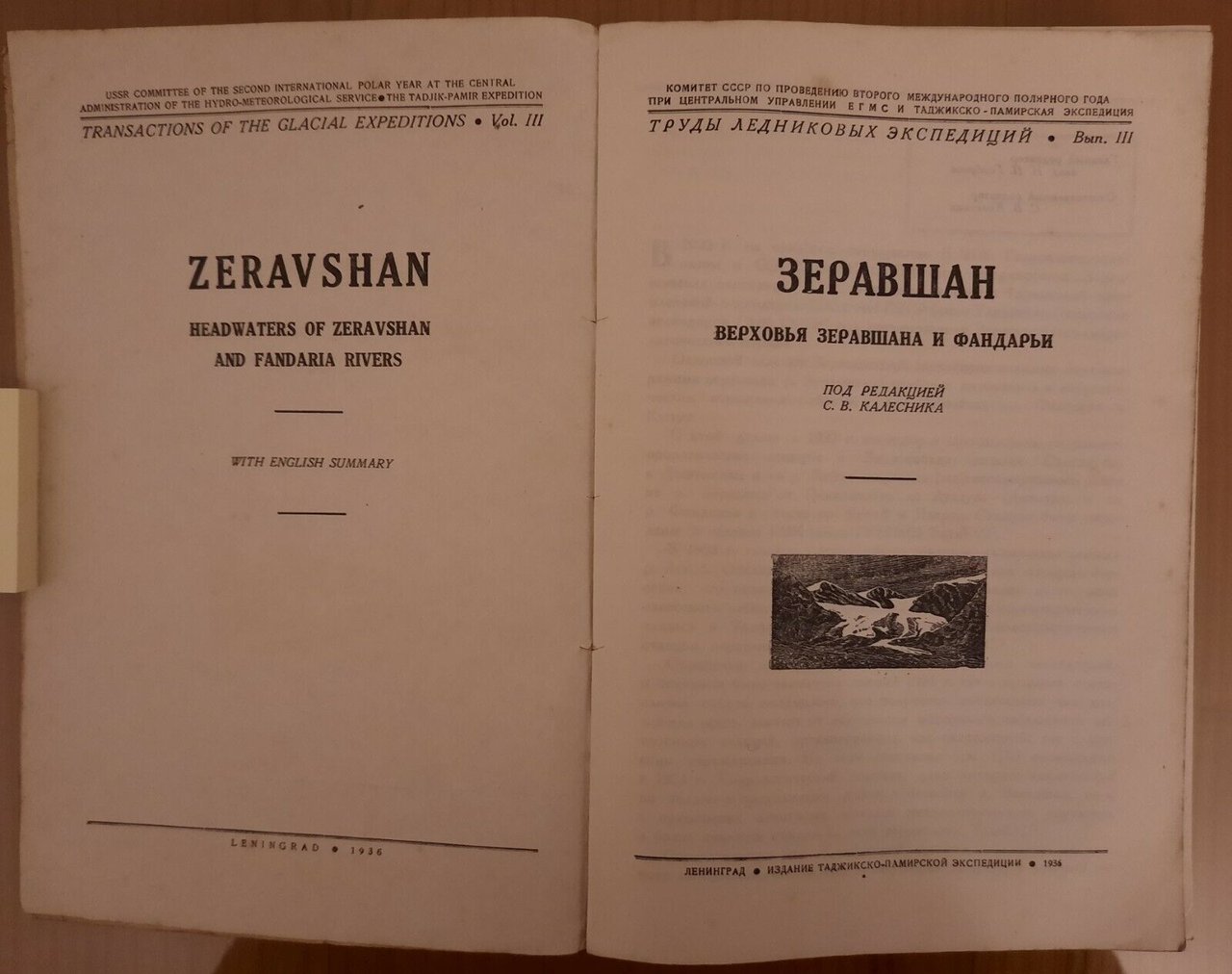 ZERAVSHAN HEADWATERS OF ZERAVSHAN AND FANDARIA RIVERS LENINGRAD 1936