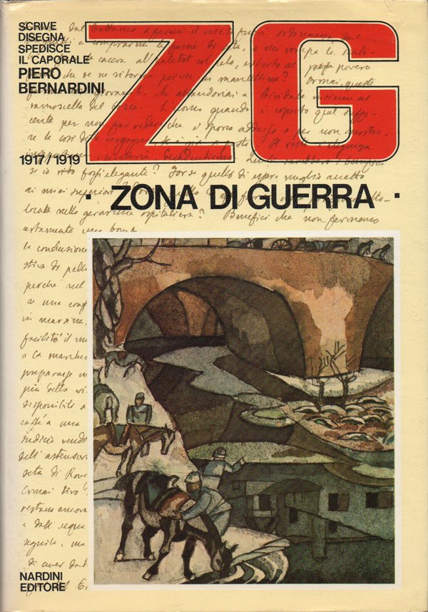 In-8° (24,1 x 16,5 cm), pp. 221, (1), legatura editoriale con sovraccoperta illustrata. Qualche normale segno d'uso e del tempo alla sovraccoperta, in particolare: alla parte che copre il dorso, scoloritura del colore di fondo, con titoli ben nitidi e vivi; nel bordo superiore della parte che copre il piatto anteriore, piccolo strappo, senza perdite, ben rimarginato mediante applicazione di carta giapponese nella parte interna. Con numerose illustrazioni a colori e in bianco e nero nel testo. Per il resto, molto ben conservato. Edizione a cura della Banca Toscana. Si allega cartoncino editoriale originale, di 21,5 x 6,8 cm, che può fungere anche da segnalibro, impresso al solo recto, con un disegno e una nota biobibliografica di Piero Bernardini. Indice. Lettere dal fronte. Ricordo di Piero Bargellini. Testimonianza che è vita. Saggio introduttivo di Umberto Baldini. «I riposi del guerriero». Saggio introduttivo di Mario Luzi. Z.G. Zona di guerra. 1917. 1918. 1919.