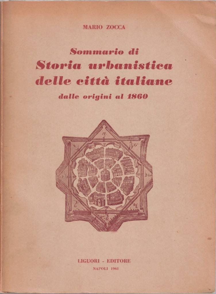 Mario Zocca, Sommario di storia urbanistica delle città italiane dalle origini al 1860, Liguori Editore, Napoli 1961, pp. 342, ill. b.n., cm 24, br. ed. All’interno, Errata corrige originale (4 pp.). Lievi tracce d’uso, leggera brunitura della carta e della brussura, minime fioriture, qualche sporadica sottolineatura e annotazione a pastello, per il resto buona copia ben conservata.