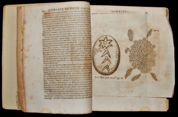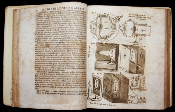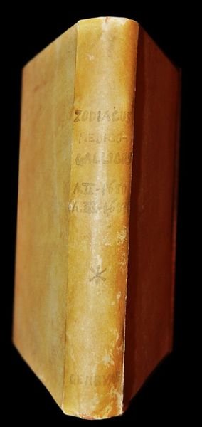 In 4°; due opere in un volume: 8 , 264 pp. e 4 c. di tav.; 153 (i.e. 155), 13 pp. e 2 c. di tav. (le due tavole del secondo volume si trovano erroneamente legate all'interno del primo volume che così contiene 6 tavole invece di 4 come attestato anche dalla didascalia esplicativa riportata nelle tavole stesse). Comunque i due volumi sono completi ed in buone condizioni di conservazione. Legatura novecentesca in cartoncino molle. Alcune leggere bruniture in alcune pagine dovute alla qualità della carta e presenti in tutte le copie di quest'opera. Minima mancanza all'angolo superiore bianco di pagina 59, 61 e di una tavola (ininfluenti). Prima edizione latina di quello che è considerato il primo periodico medico. L'opera vide pubblicati solo i primi 3 anni (qui sono presenti il secondo e terzo anno). Si dice che fu proprio lo "Zodiacus medico-gallicus" che diede a Bayle l'idea delle "Nouvelles de la Republique des Letteres". Inizialmente l'opera uscì il primo anno in francese con il titolo "Nouvelles découvertes sur toutes les parties de la médecine" ma ben presto venne prima tradotta in tedesco e poi in latino, unica lingua con cui proseguì la sua esistenza. Il latino permise infatti al periodico di uscire per altri due anni potendo raggiungere un pubblico più ampio di lettori. Allinizio di ogni capitolo presente inciso il segno zodiacale del mese di riferimento. Anche se l'esperienza dello Zodiacus fu breve esso aprì la strada alla pubblicazioni periodiche a carattere medico-divulgativo che caratterizzarono la fine del XVII° secolo e l'inizio del XVIII° e proseguirono fino ad oggi. Nicolas de Blegny (Chaumont-en-Bassigny 1646 circa - Avignone 1722); fu valente medico (specializzato nello studio delle malattie veneree) e chirurgo personale dei reali di Francia e si interessò anche di storia e letteratura. Durante la sua avventurosa vita fu poi imprigionato per dieci anni nel castello di Angers, per aver fondato un falso ospedale per stranieri, in realtà luogo di malaffare. Blegny, come ricorda il Garrison-Morton fu il primo francese a dare un contributo importante alla medicina forense. All'interno dell'opera sono riportate alcune delle più importanti scoperte scientifiche del 1680 e 1681. Gli indici dei due volumi si trovano ambedue alla fine del secondo volume. fra i vari capitoli ne troviamo dedicati alle febbri, alle acque minerali, a problemi urologici, alla natura dei denti e alle loro malattie e patologie e al modo di curarli, a casi ginecologici o a bambini nati con malformazioni terribili, ma anche a curiosità fisico-naturali come la colorazione dei coralli, la filosofia dei colori e alcune sperimentazioni sui colori, studi su alcuni animali rari arrivati dall'Africa o su nuovi tipi di funghi, su una balena. Gli ultimi due capitoli sono assai curiosi e riportano, uno, alcune teorie relative ai folletti ed alla parte data loro nella tradizione francese ed irlandese nella creazione del "genio" e l'altro è dedicato ad una teoria sulle comete. Opera in buone condizioni di conservazione e assai rara. Rif. Bibl.: Caillet I, 1224; Garrison-Morton 1725; Waller I, 1133; Wellcome II,180.