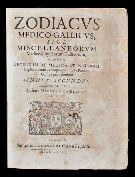 Zodiacus medico-gallicus sive Miscellaneorum medico-physicorum gallicorum titulo recens in re medica et naturali exploratorum, vnoquoque mense Parisiis gallice prodeuntium annus secundus scilicet M.DC.LXXX. Authore Nicolao De Blegny R.G.C.O Zodiacus