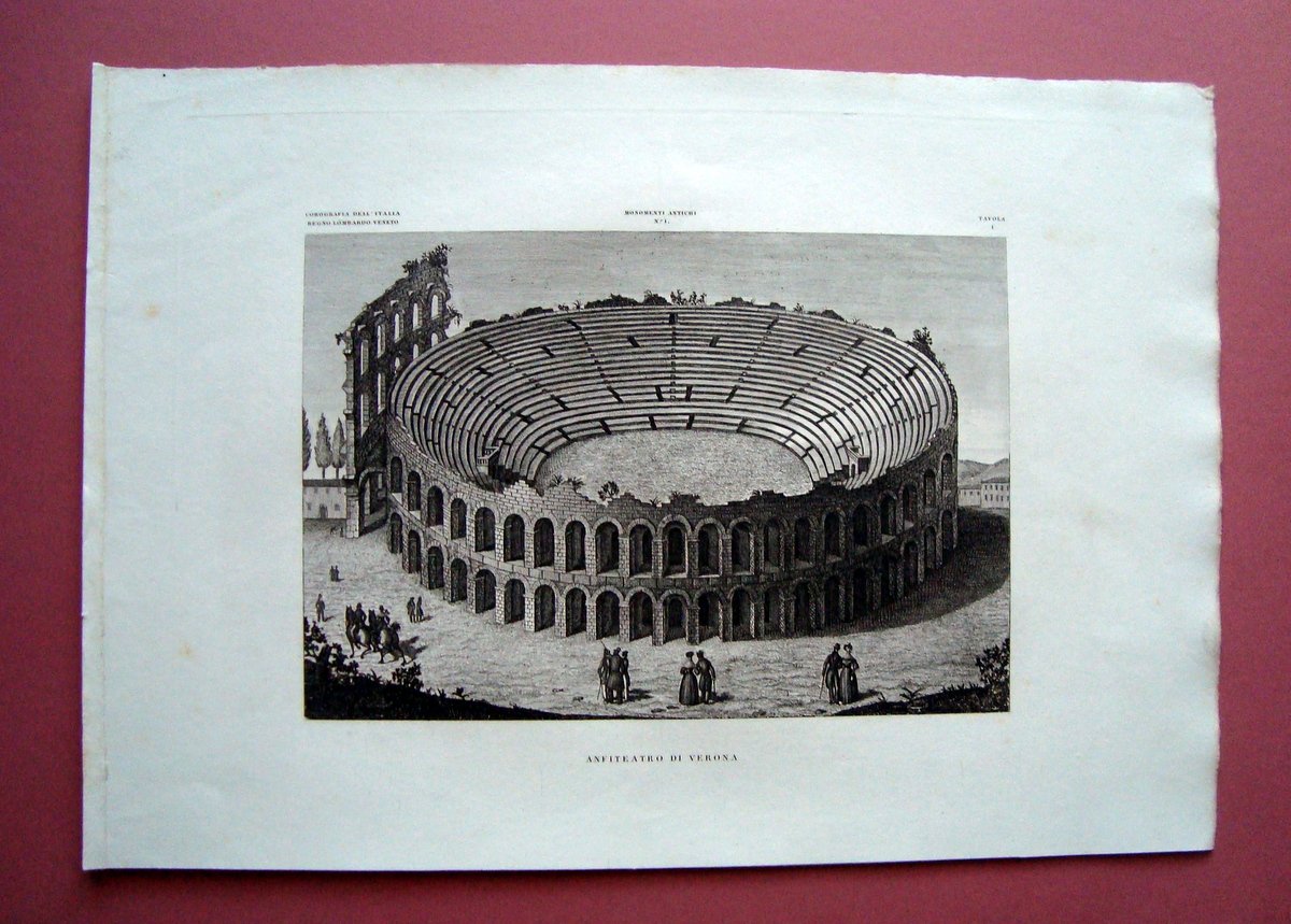 Zuccagni Orlandini acquaforte originale 1840 Anfiteatro di Verona