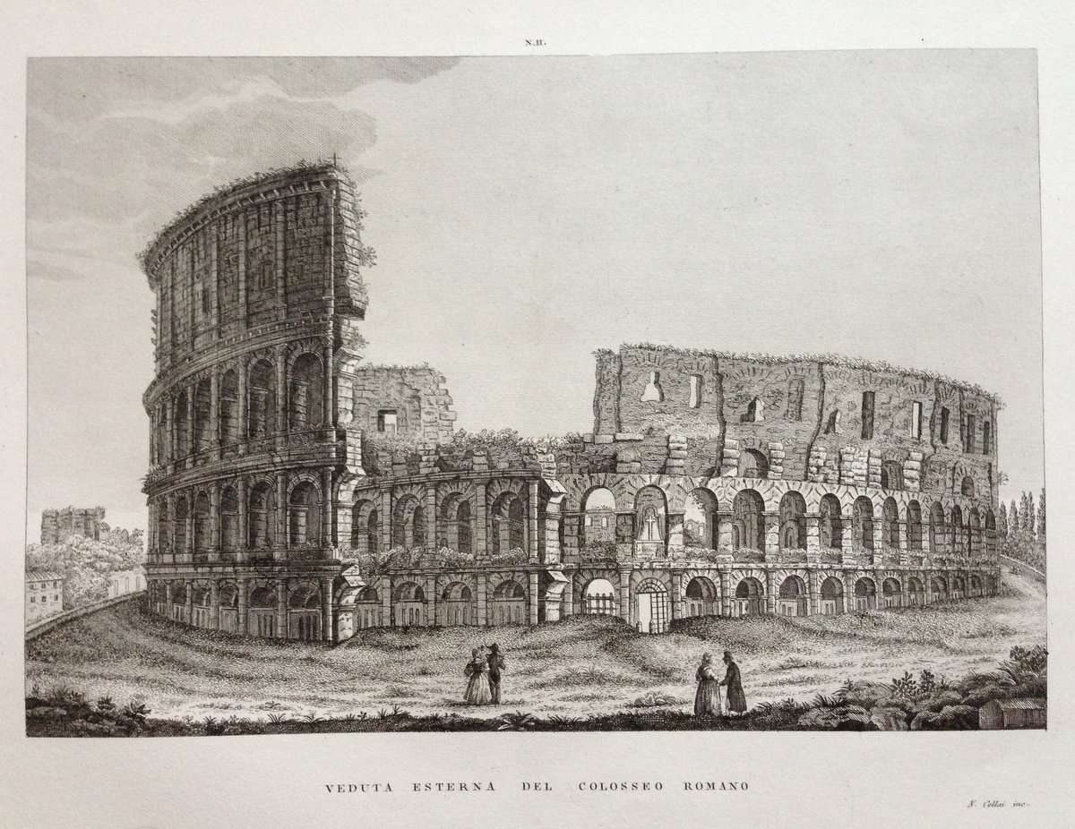 Zuccagni Orlandini Acquaforte Originale 1840 Atlante Colosseo Romano Roma