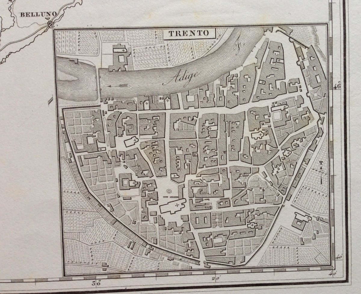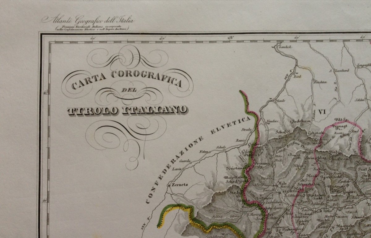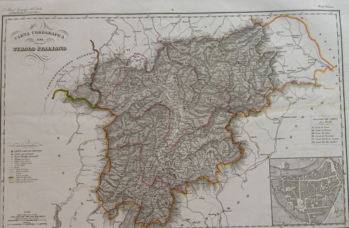 Zuccagni Orlandini Acquaforte Originale 1840 Atlante Geografico Tirolo Italiano