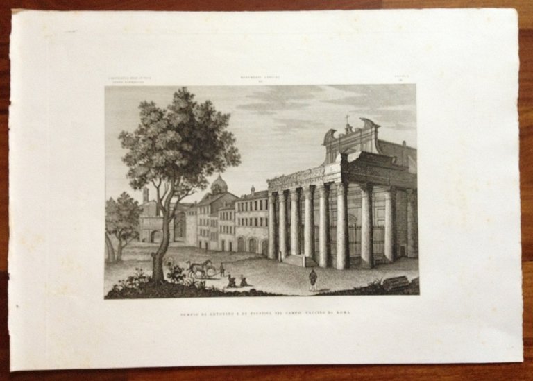 Stampa antica originale acquaforte, Tempio di Antonino e di Faustina nel campo vaccino di Roma tratto da ATLANTE GEOGRAFICO DEGLI STATI ITALIANI COROGRAFIA FISICA STORICA E STATISTICA DELL'ITALIA di Attilio Zuccagni - Orlandini Firenze,1840. Tecnica: incisione su rame all'acquaforte. Dimensioni: con margini bianchi cm 32x46 Condizioni di conservazione Ottima con ampi margini; con qualche leggero foxing (vedi foto). NON TRATTIAMO RIPRODUZIONI OGGETTO ASSOLUTAMENTE ORIGINALE INCZC.0182 MT