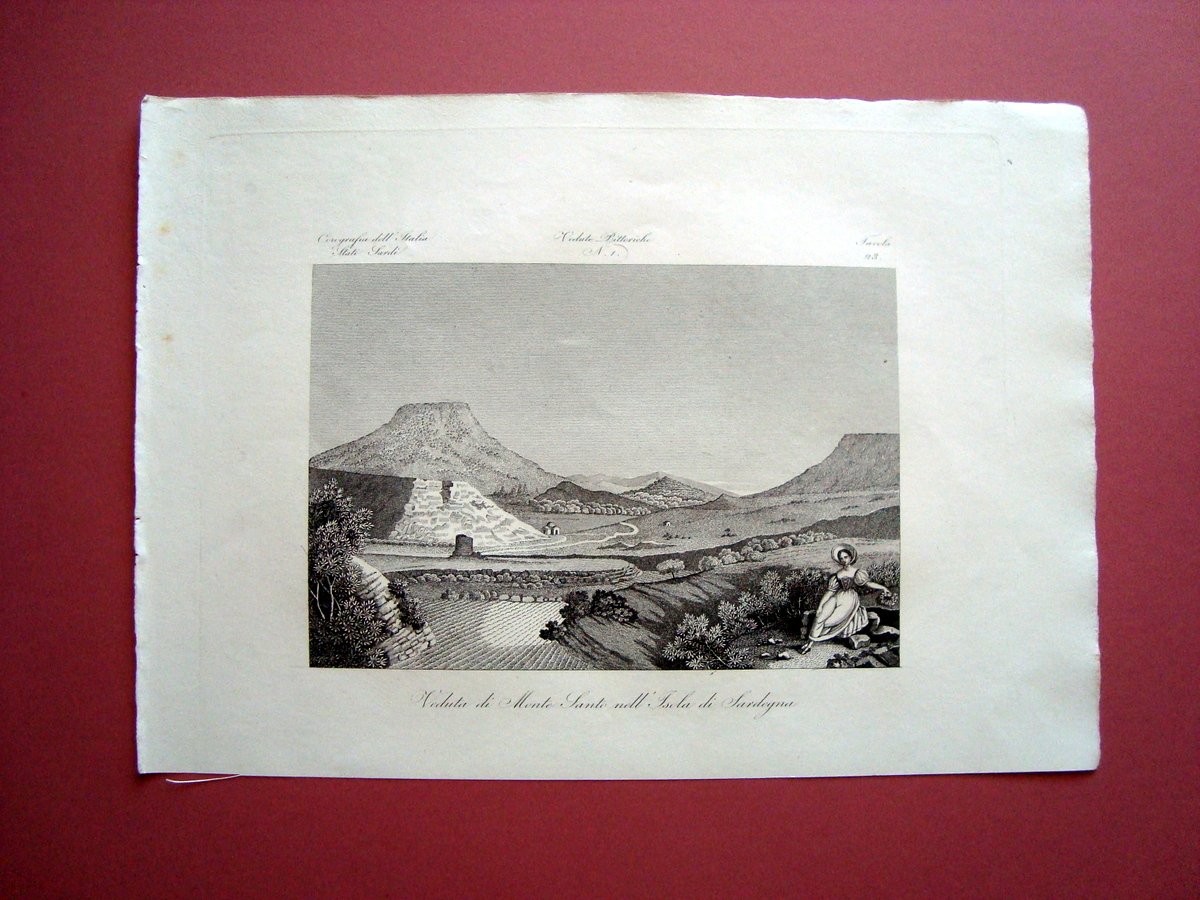 Zuccagni Orlandini acquaforte originale 1840 Sardegna Monte Santo