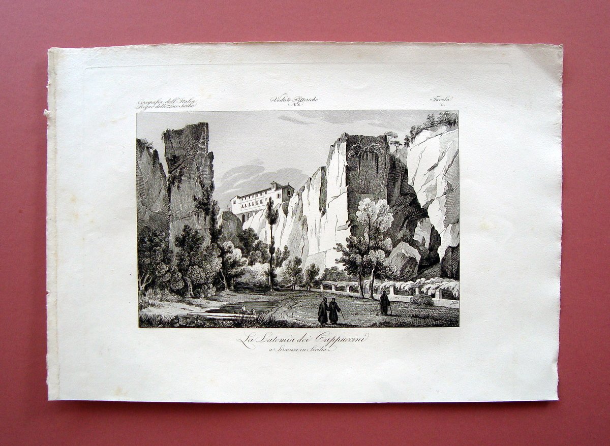 Zuccagni Orlandini Latomia Cappuccini Siracusa Sicilia 1840 acquaforte originale