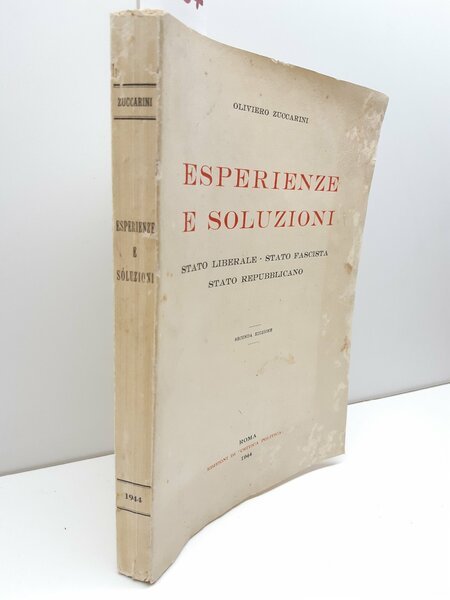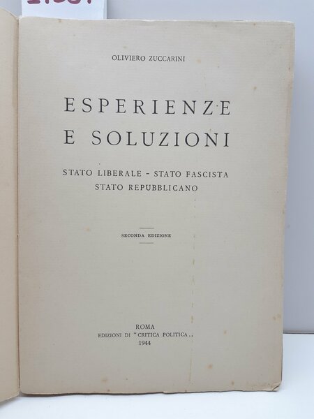 Zuccarini Esperienze e soluzioni stato liberale stato fascista stato repubblicano 2∞ ed. Critica Politica 1944