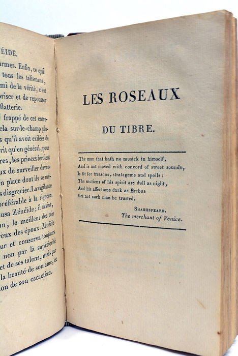 4 feuillets. 306 pages. 1 feuillet. (17x10 Cm). Demi-veau de l'époque. Dos lisse orné. Charnières fendues. Coins et coiffes émoussés. Plats un peu frottés. Félicité de Genlis se fit connaître par ses principes sur l’éducation des jeunes gens et par de nombreux ouvrages littéraires. La Comtesse s'exile en Angleterre pendant la Terreur et fut ensuite engagé par Napoléon comme espionne. Ce dernier lui vérse une pension en échange d'une correspondance régulière dans laquelle Genlis traite de morale et de littérature et surtout raconte à son protecteur des anecdotes de l'ancien régime. Papier un peu bruni. Rares rousseurs.