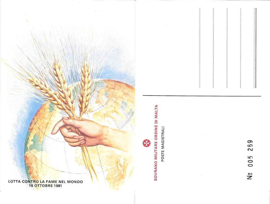 1981. Lotta contro la fame nel mondo. Ordine di Malta. Numerata. Non viaggiata
