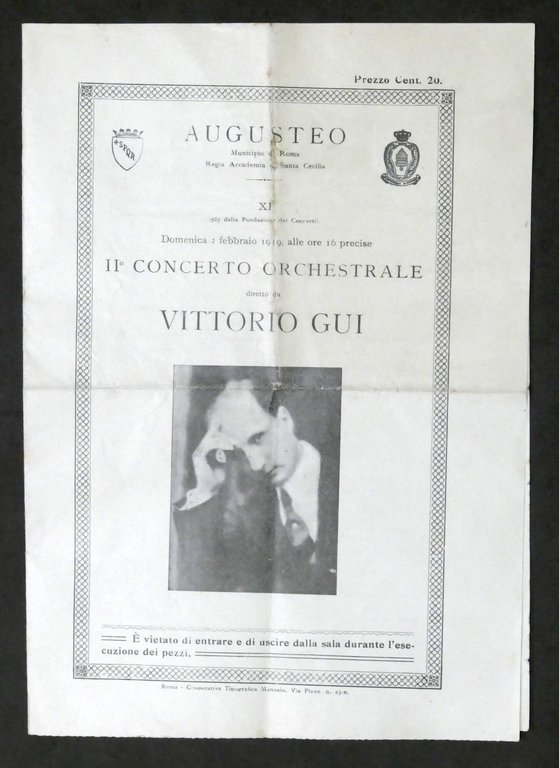 2° Concerto Orchestrale diretto da Vittorio Guti - Programma - Roma - 1919 | Libri antichi e moderni |