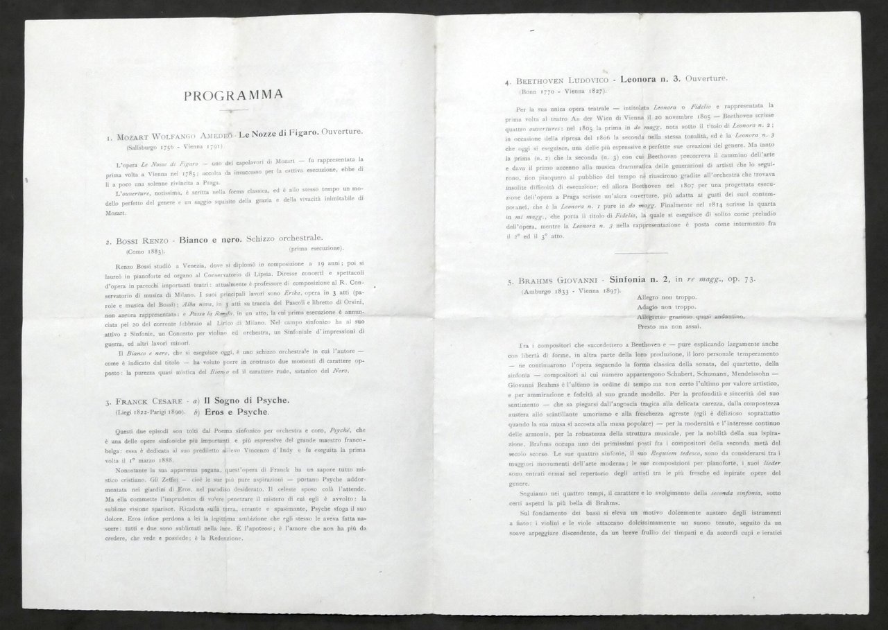 Augusteo Municipio Roma - 2° Concerto Orchestrale diretto da Vittorio Guti - Programma - Domenica 2 febbraio 1919 Pag. 4 Copertina morbida - Lingua italiana. Dimensioni: 18 x 25 cm ca. Buone condizioni generali. Â