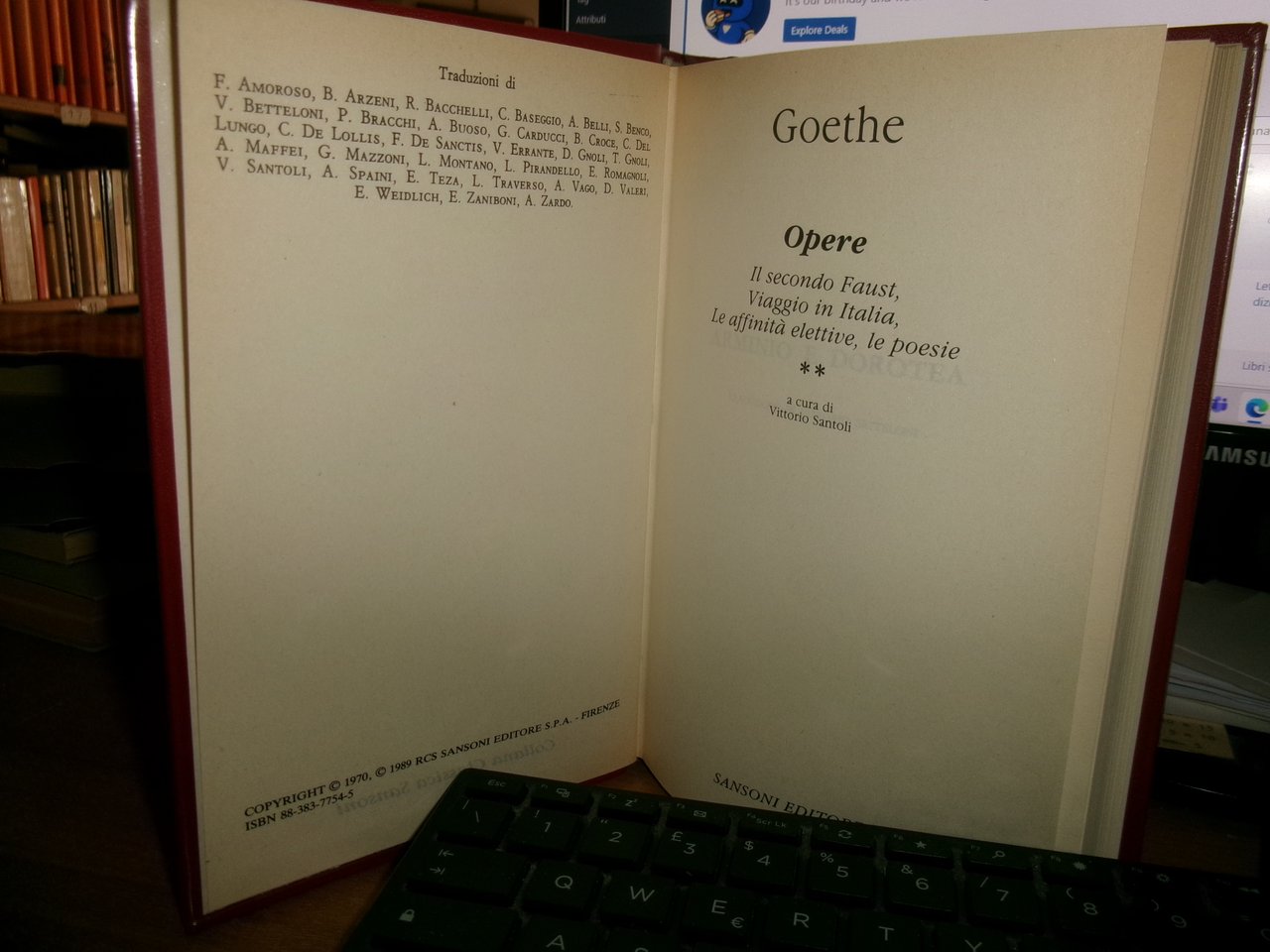 2 volumi - GOETHE Opere con introduzione e a cura di Vittorio Santoli... 1989