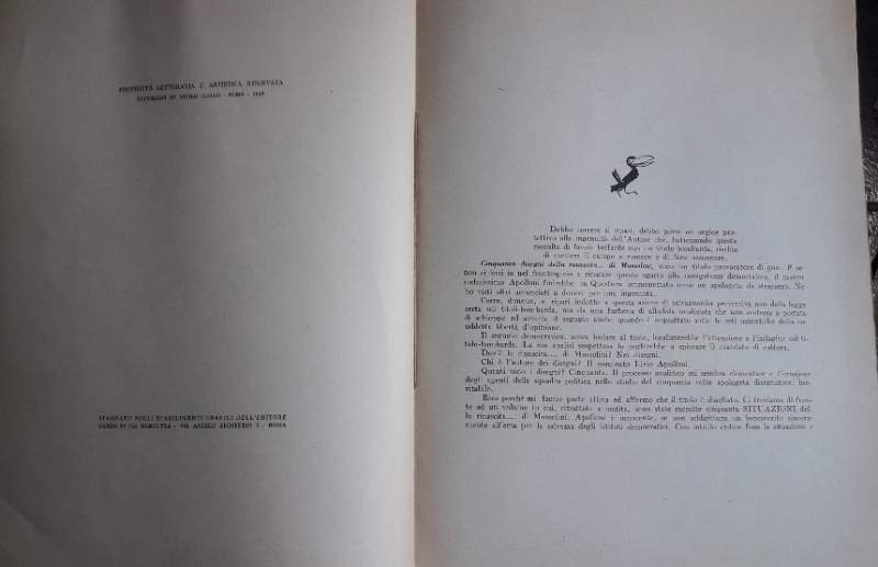In folio, br. ed., pp. 50, stampato negli Stabilimenti grafici dell'Editore Danesi in Via Margutta, prefazione di Riccardo Giannini, ill. in n. n.t., piega e strappi alle estremita' del dorso, fioriture e segni d'uso alla cop., interno in buono stato, bruniture e segni del tempo. ***Due to bureaucratic reasons, books dated over 70 years old cannot be immediately exported, please contact us before placing the order.***