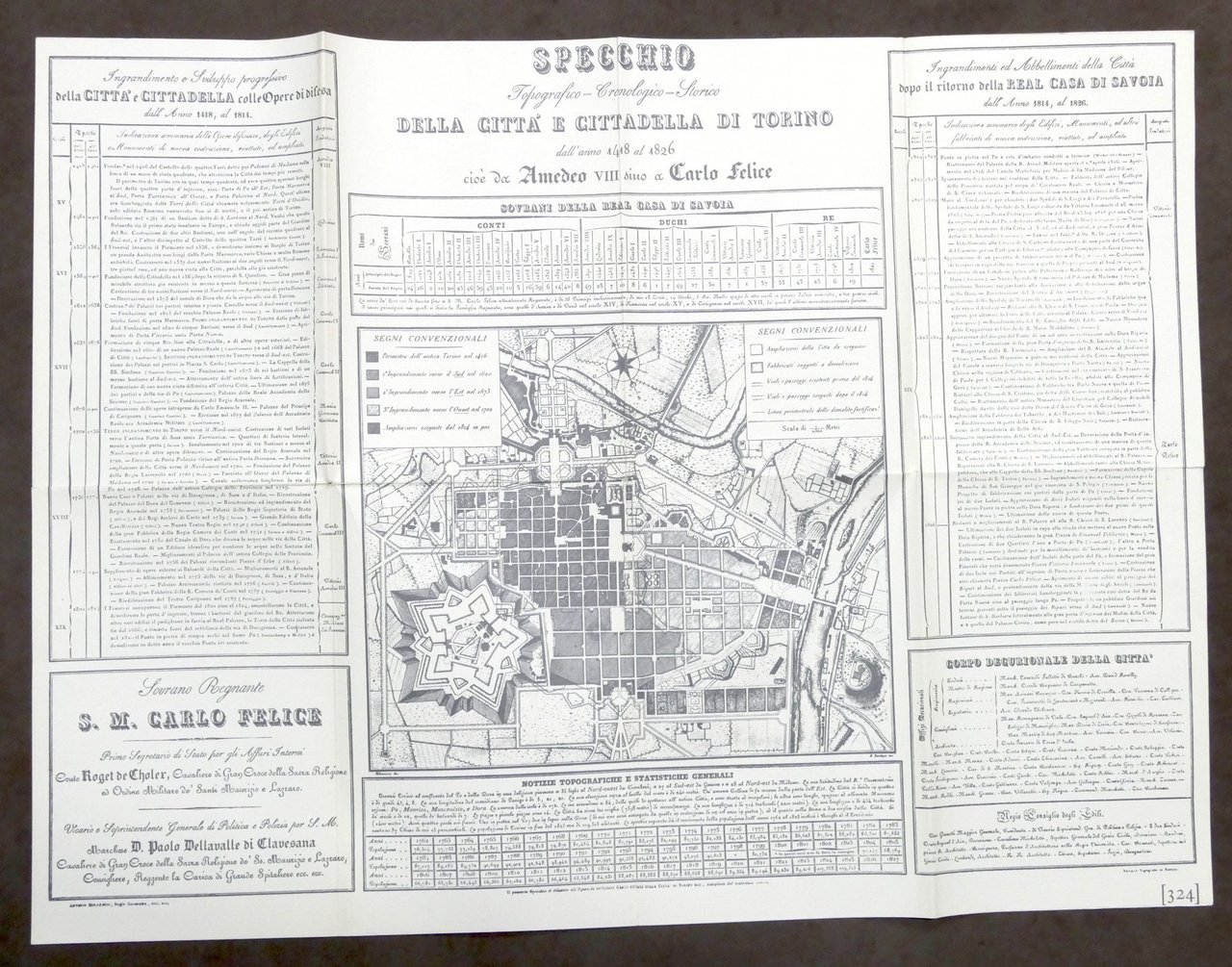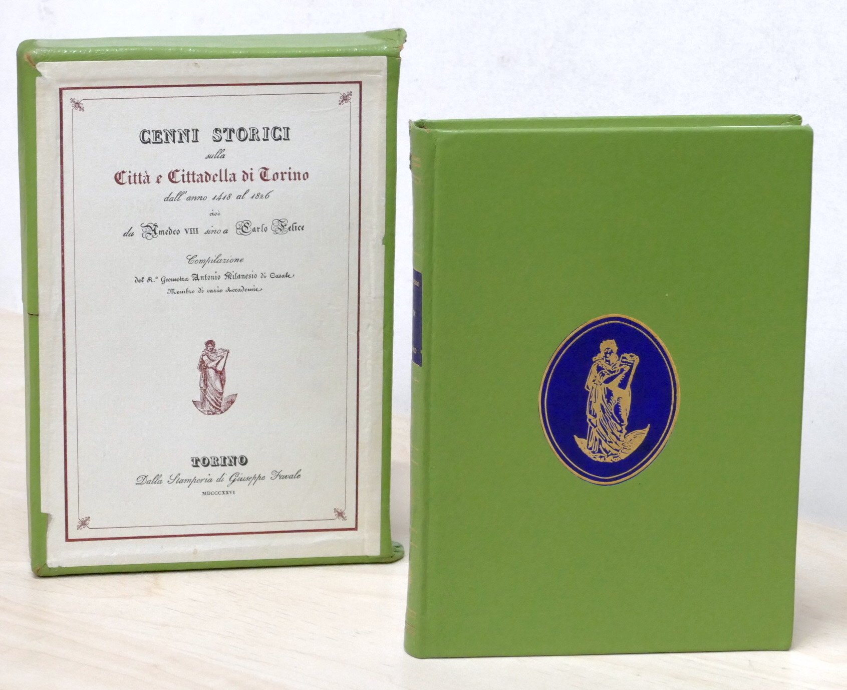 Cenni storici sulla città e cittadella di Torino dall'anno 1418 al 1826 cioe da Amedeo VIII sino a Carlo Felice - compilazione del r.o geometra Antonio Milanesio - presentazione di Luciano Tamburini - 1971 Riproduzione anastatica dell'ed.: Torino Favale, 1826 Edizione di 400 copie numerate. Esemplare N. 360 Pag. 13, 144 + una tavola topografica ripiegata allegata Copertina rigida - Testo in italiano. Condizioni molto buone. Con cofanetto.