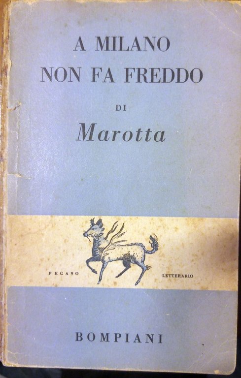 A MILANO NON FA FREDDO di Giuseppe Marotta. BOMPIANI editore prima edizione, 1949. 203 pagine. copertina editoriale in brossura. Stato di conservazione: molto buono (pagine ingiallite, copertina sciupata con dorso mancante, scritta a matita sulla controguardia posteriore)