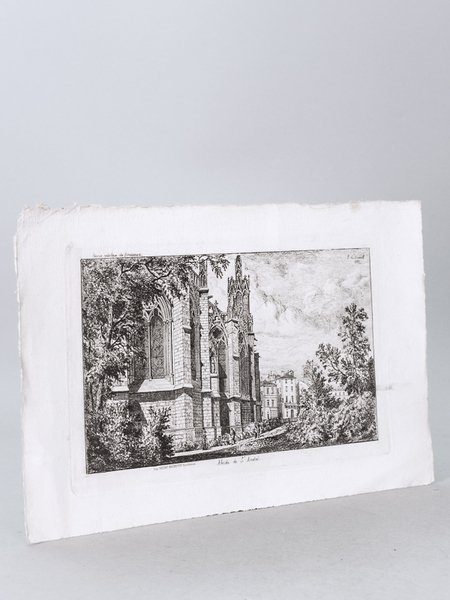 Eau-forte format cm, Imp. Reday Hachette, Bordeaux, Extraite de la Revue Catholique de Bordeaux, s.d. Bon état (très lég frottée). Belle eau-forte, typique du talent de Léo Drouyn (1816-1896). Entre 1880 et 1888, Léo Drouyn fournit un total de 43 eaux-fortes à la Revue Catholique de Bordeaux (créée en 1880). Léon Drouyn, artiste et spécialiste du Moyen-Age, a laissé un nombre considérable de dessins et gravures, qui constituent un témoignage exceptionnel du patrimoine architectural aquitain, tel qu'il apparaissait encore au milieu du XIXe siècle.