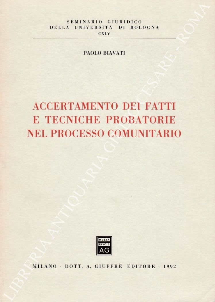 Accertamento dei fatti e tecniche probatorie nel processo comunitario | Libri antichi e moderni | Biavati Paolo