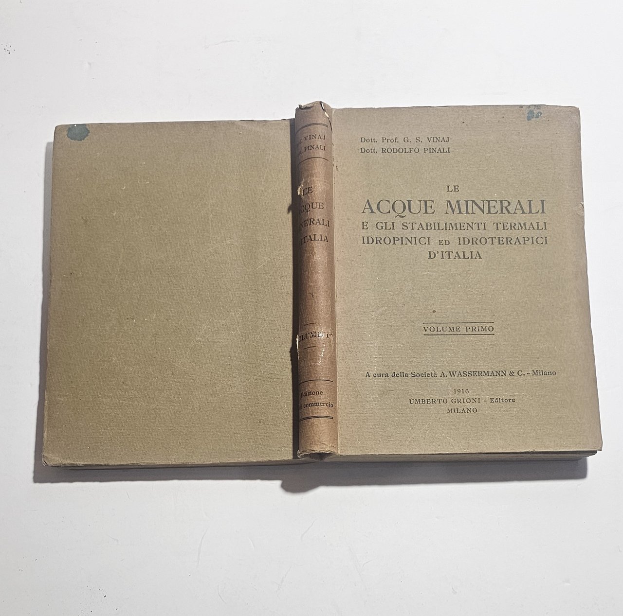 Importante volume dedicato allo studio delle acque minerali e degli stabilimenti termali italiani, pubblicato nel 1916 e redatto sotto l'egida della Società A. Wassermann & C.