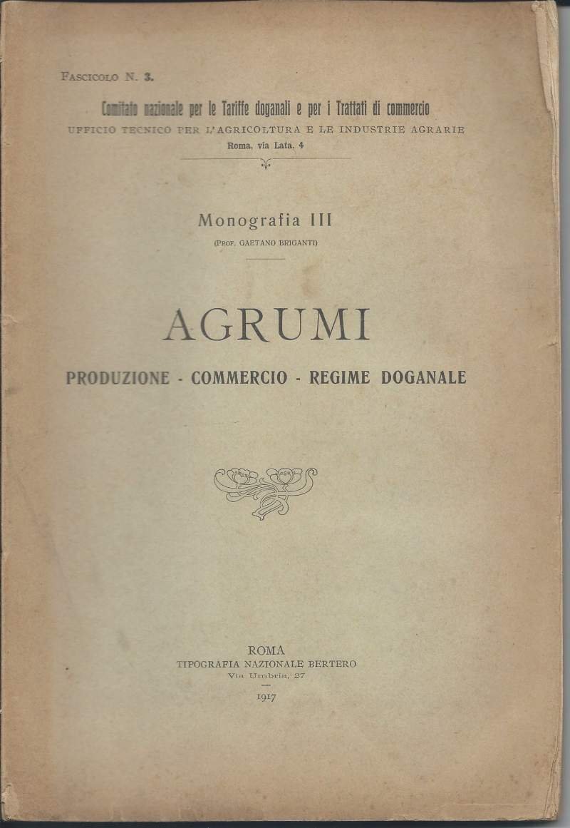 AGRUMI - Produzione - Commercio - Regime doganale (1917) | Libri antichi e moderni | Briganti Gaetano