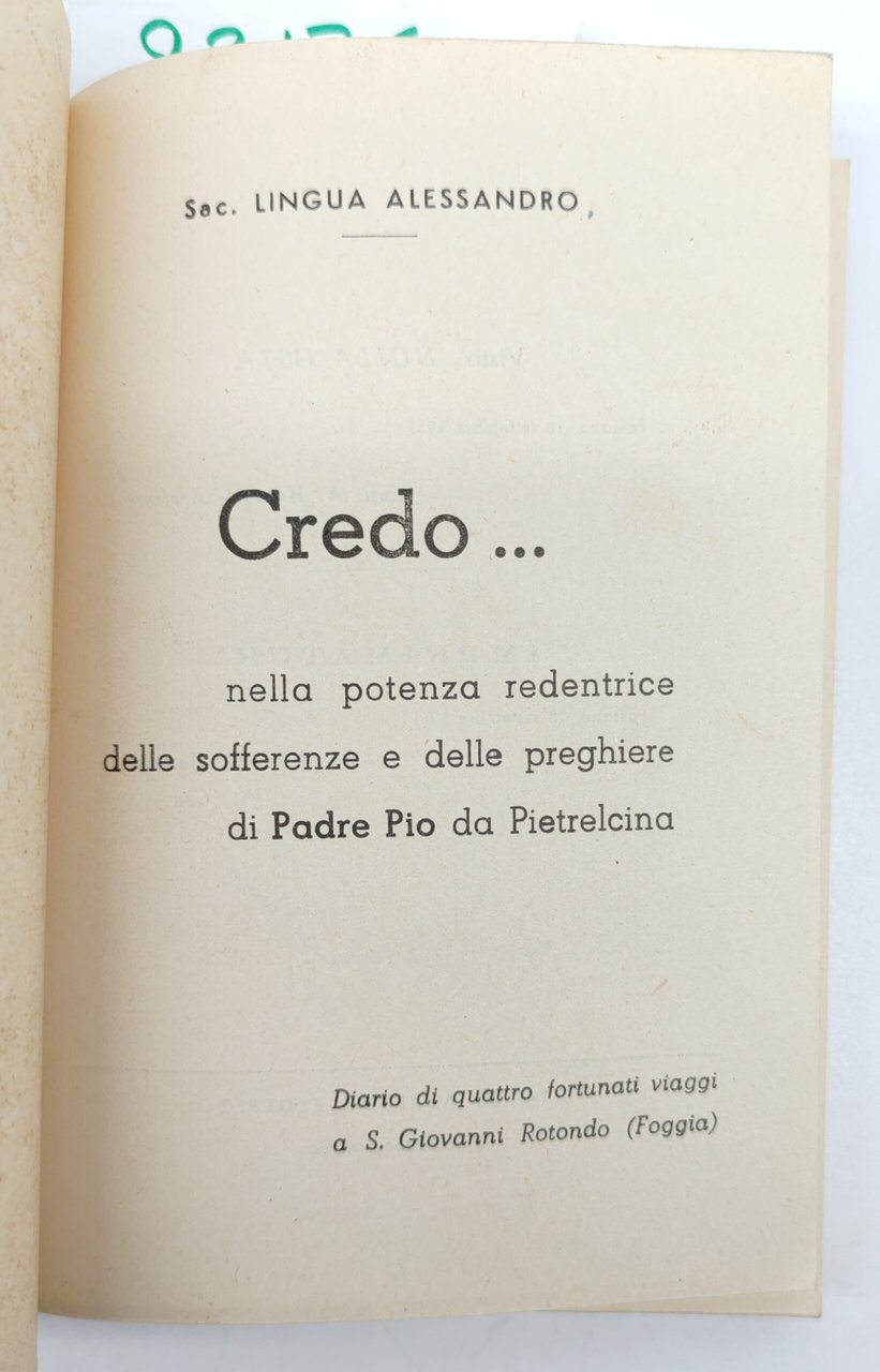 Alessandro Lingua Padre Pio Credo 1951 | Libri antichi e moderni | Alessandro Lingua