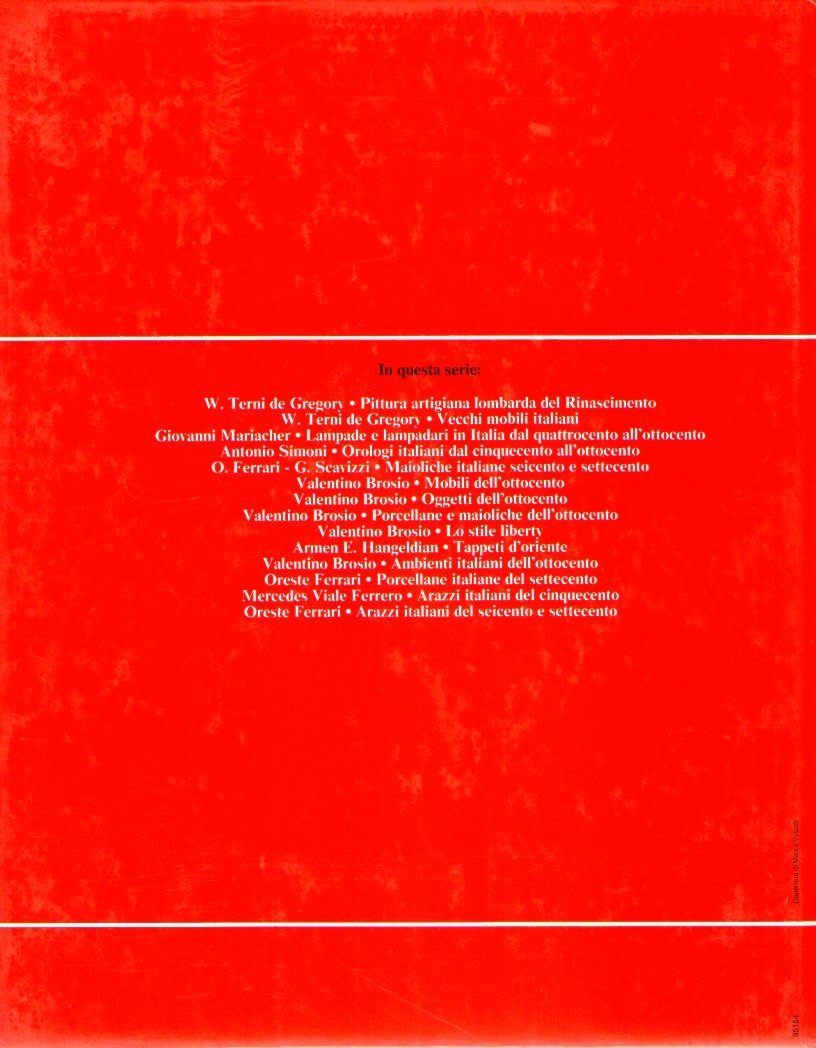 Copertina cartonata lucida illustrata lievemente ombrata di polvere. Tagli lievemente ombrati di polvere. Pagine in ottimo stato con 160 illustrazioni in nero. Collana " Le arti nella casa italiana". Formato 22 x 28. Buono (Good) .