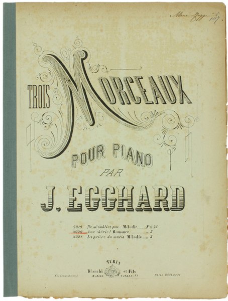 AME CHERIE! Romance. TROIS MORCEAUX pour piano, n.2020. SPARTITO. | Libri antichi e moderni | Egghard J.