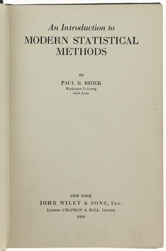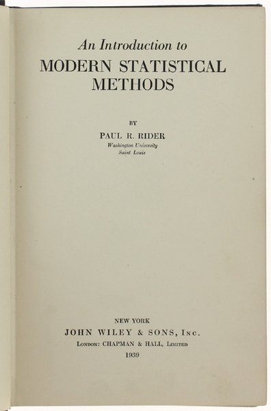 AN INTRODUCTION TO MODERN STATISTICAL METHODS. | Libri antichi e moderni | Rider Paul R.