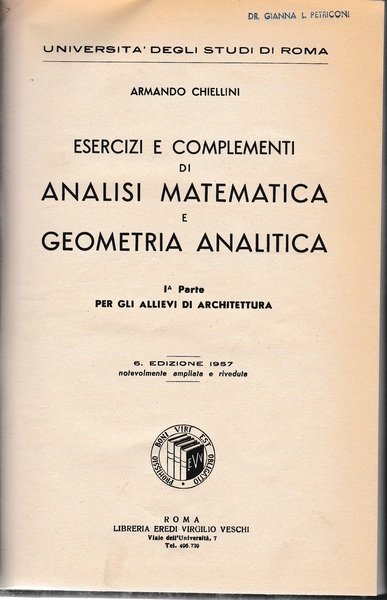 Analisi matematica e geometria analitica. 1ª parte. | Libri antichi e moderni | A. Chiellini, ,A. Chiellini