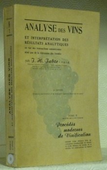 Analyse des vins et interprétation des résultats analytiques en vue des transactions commerciales ainsi que de la répression des fraudes. 4e édition, entièrement refondue et mise à jour conformément aux conventions internationales du 5 juin 1935 et à la loi française du 21 Mars 1936. Tome II de l’ouvrage. Procédés modernes de vinification. Honoré d’une médaille d’or de l’Académie d’Agriculture de France et d’une médaille de vermeil de la Société des Agriculteurs de France. | Libri antichi e moderni | Fabre, J. H.