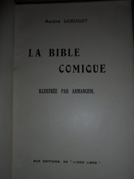 (Anarchia) André, Lorulot. France, Aux Editions de l' Idée Libre, 1938. La Bible Comique Illustrée. In-8°, br. orig. 272, pp. con numerosi disegni in bianco e nero nel testo. Neg. esot. mob. 101