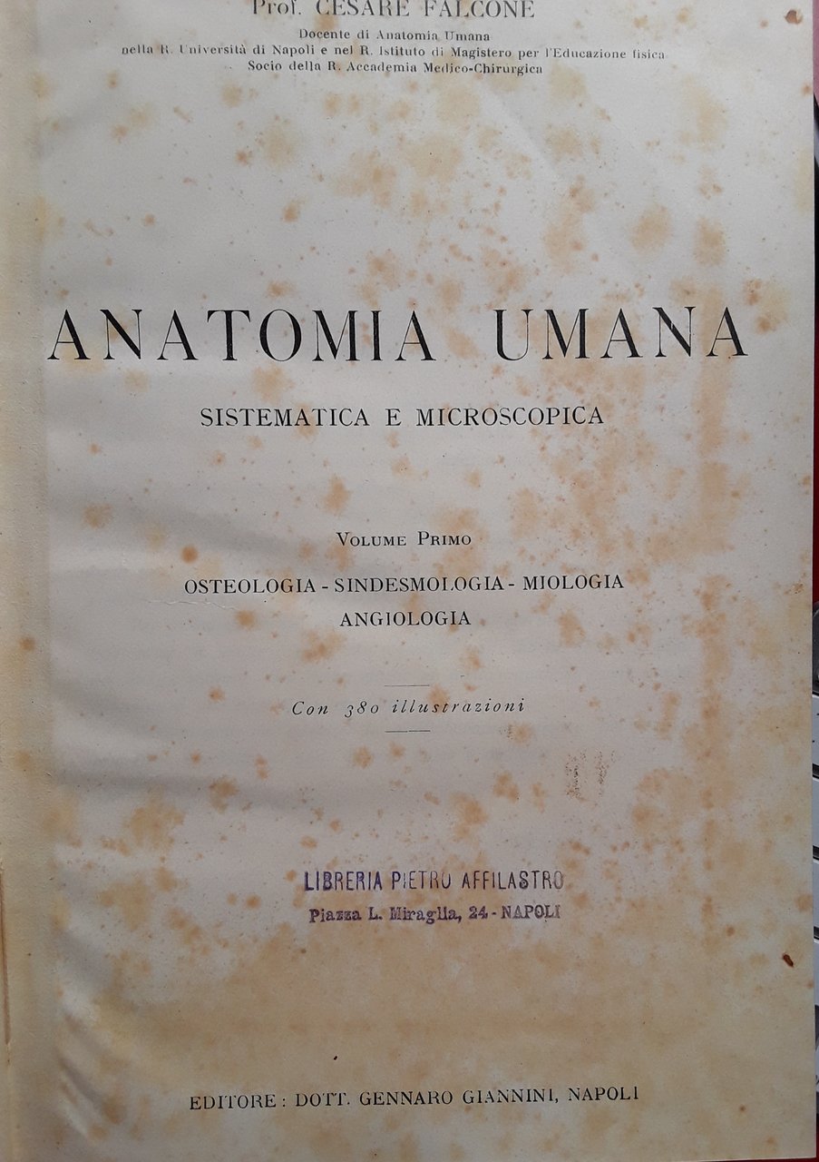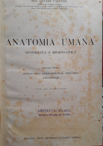Anatomia umana sistematica e microscopica. Volume 1 | Libri antichi e moderni | Cesare Falcone, ,Cesare Falcone