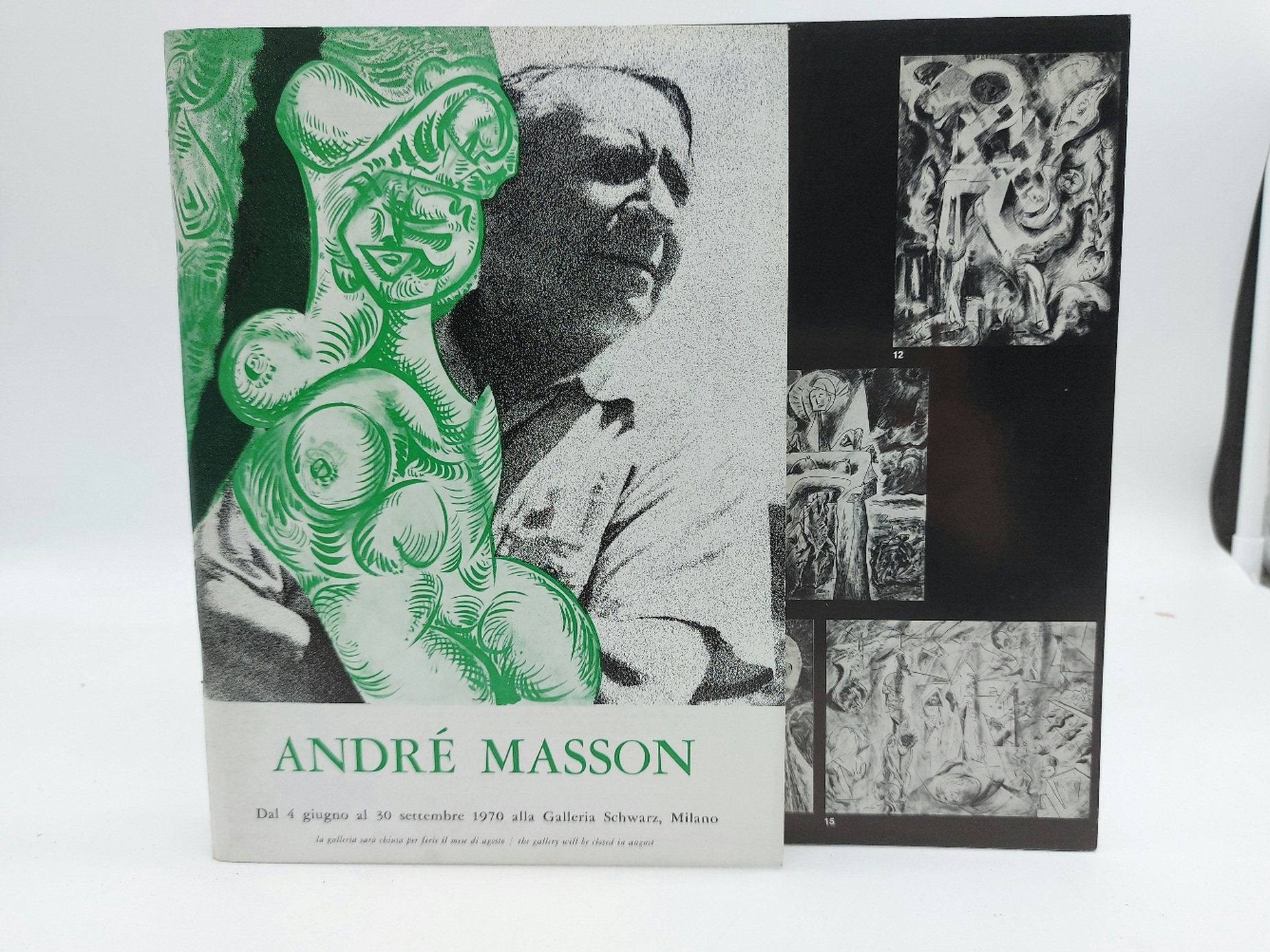 In 8 (cm 16,5 x 23,5), pp. 36 con riproduzioni di opere in bianco/nero ea colori. Brossura editoriale. Catalogo della mostra di opere di Andre' Masson svoltasi alla Galleria Schwarz di Milano nel 1970. Conservato un pieghevole sciolto all'interno con i titoli e le immagini di alcuni nuovi acquisti di opere dell'artista da parte della Galleria. Testo di presentazione di Gilbert Brownstone in italiano e traduzione francese ed inglese.