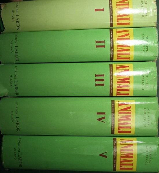 Come sono. Dove vivono. Come vivono - in 8° - pp.921; 891; 891; 1067; 1021 - Tela e oro con sovracopertina - Cinque volumi - Illustrazioni a colori fuori testo a piena pagina e in b/n nel testo e fuori testo - Strappi senza mancanze alle sovracopertine - Vol. I: Mammiferi; Vol. II: Mammiferi; Vol. III: Uccelli; Vol. IV: Uccelli. Rettili; Vol. V: Anfibi. Pesci