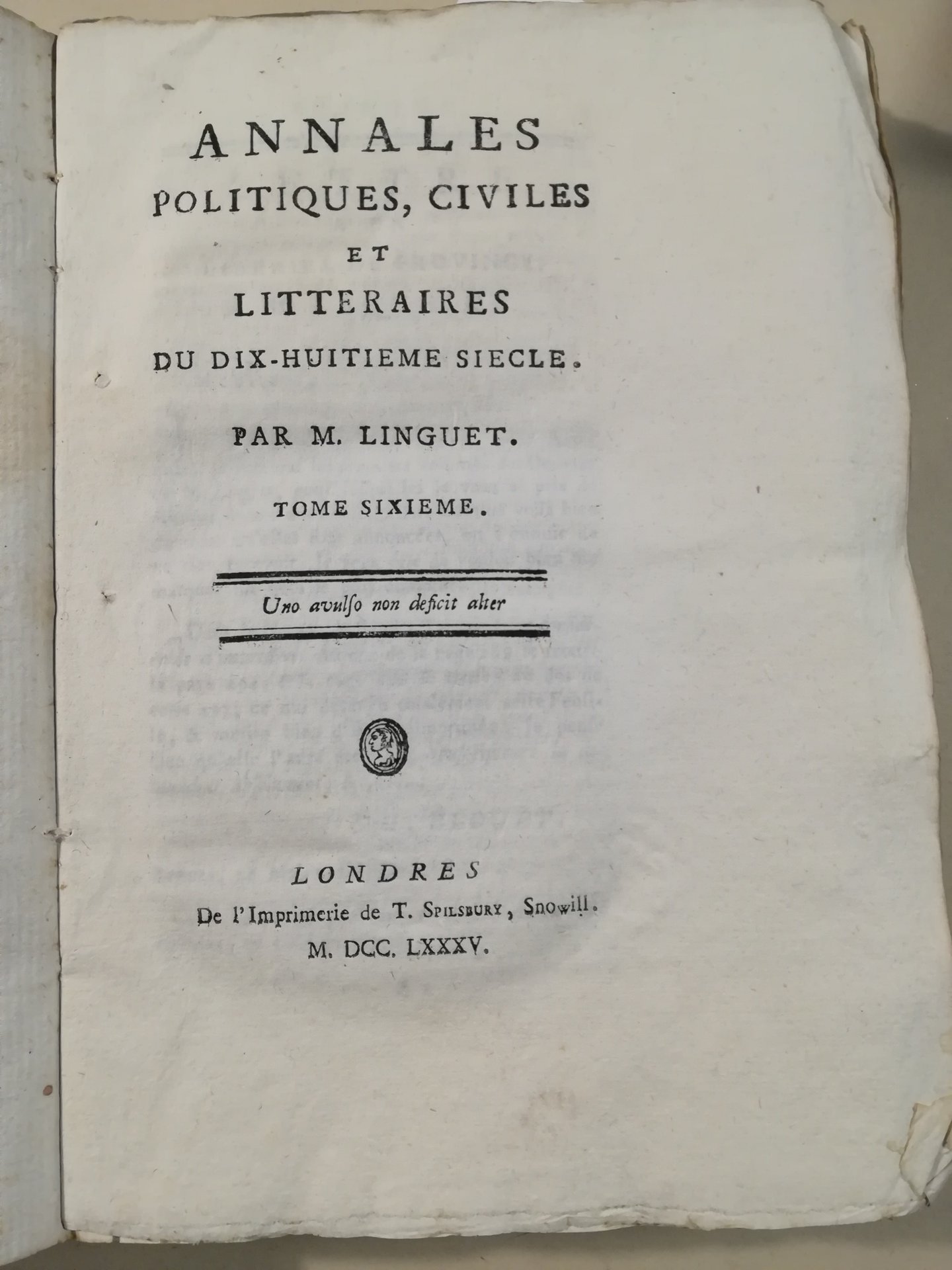 Annales politiques, civiles et litteraires du dix-huitième siecle par M. Linguet. Tome sixième
