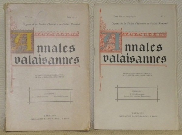 Annales valaisannes. Tome VII, 1929 - 1930, n.° 1. Organe de la Société d’Histoire du Valais Romand. Sommaire: Dr. Alfred Comtesse: Les ex-libris valaisans (supplément). Annales valaisannes. Tome VI, 1926 - 1928, nos.° 1 - 4, juin 1927. Organe de la Société d’Histoire du Valais Romand. Sommaire: Les ex-libirs valaisans . . . Dr. Alfred Comtesse. | Libri antichi e moderni | Bertrand, M. J. - Bioley, Pierre.