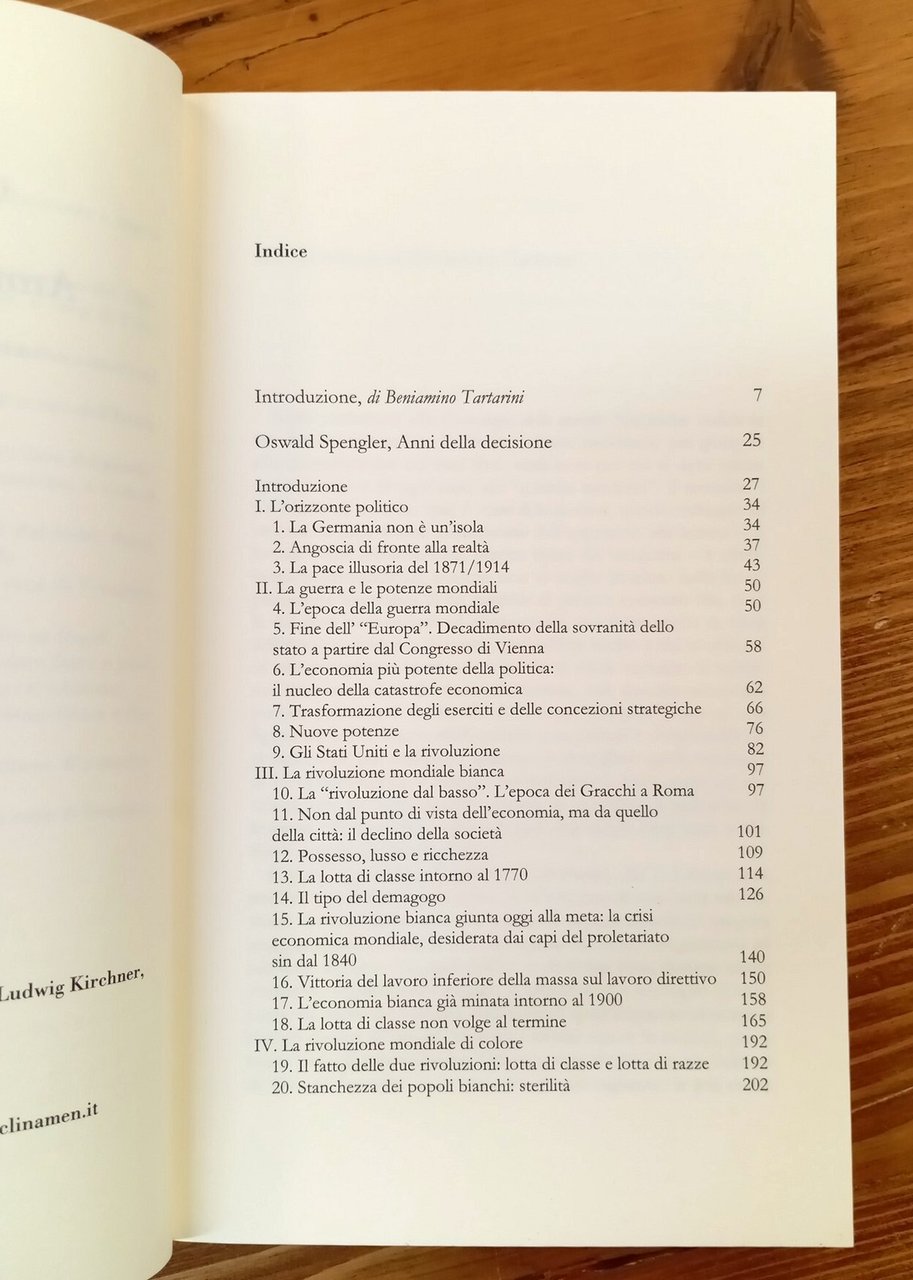 Collana "La biblioteca d'Astolfo" - Brossura editoriale di 212 pagine. Introduzione di Beniamino Tartarini. Indice consultabile nelle nostre immagini. Copia in ottimo stato, forse mai letta -- Pubblicato nel 1933, quindici anni dopo "Il tramonto dell'Occidente", "Anni della decisione" è lo scritto più disincantato e "lucido" di Oswald Spengler. Veemente contro i luoghi comuni della pubblica opinione, di quello che oggi potremmo chiamare il "politicamente corretto", "Anni della decisione" sa cogliere, con una acutezza maggiore dello stesso "Tramonto", i fenomeni della civiltà in declino, i suoi caratteri ed elementi essenziali: atomizzazione della vita, sradicamento del soggetto umano, culto della moda, dello sport e del tempo libero, dominio della fandonia mediatica, emergenza della partitocrazia e delle sue propaggini sindacali. Vi è uno scarto tra la verità e il potere, soprattutto laddove il potere dipinge se stesso come verità, travestendosi da pensiero critico, tanto "a destra" quanto "a sinistra". "Destra" e "Sinistra", ci dice Spengler, in realtà manifestano una identità di fondo: né più né meno che forme del potere stesso. Oggi, "Anni della decisione" può essere letto al di fuori delle maglie del suo impianto ideologico di più stretta appartenenza, del suo gergo. Non incarnando i contenuti immediati della nostra ideologia di moderni membri della società, il testo di Spengler ci permette di rapportarci ad un oltre essenziale rispetto alla presunta ovvietà di quel credo di matrice illuminista che sta al fondo del potere dominante e dei suoi travestimenti.