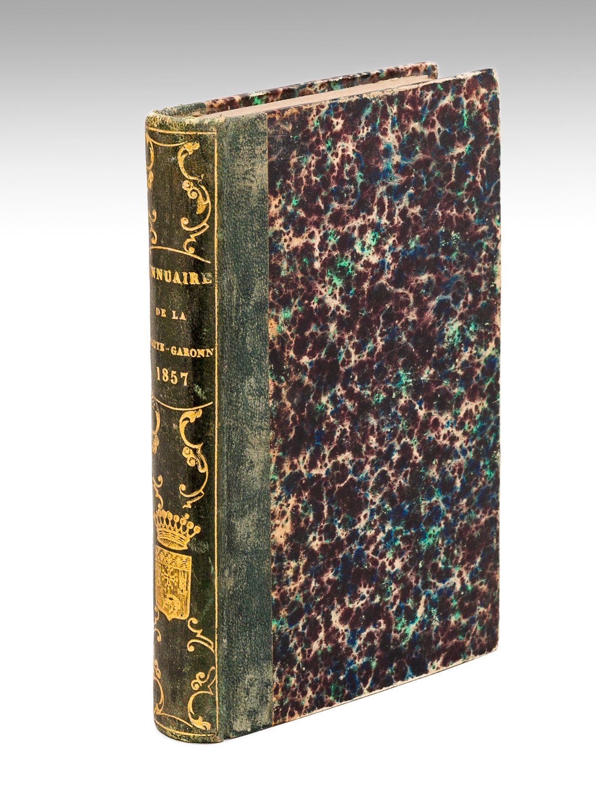 Subventionné par le Conseil Général, 1 vol. in-12 reliure d'époque demi-veau vert, armes de la Ville de Toulouse poussée en dos, Imprimerie Lamarque et Rives, Toulouse, s.d. [ 1857], 440 pp. Les nombreuses réclames publicitaires imprimées en fin d'ouvrage sont du plus grand intérêt. Bon état (mors lég. frotté, bon exemplaire par ailleurs, ex-libris en garde).