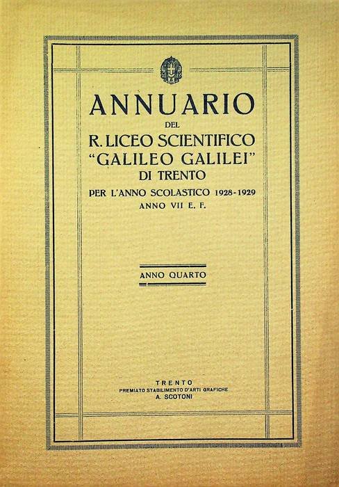 Annuario del R. Liceo scientifico ”Galileo Galilei” di Trento pe l'anno scolastico 1928-1929 - Anno VII E.F.: anno quarto. | Libri antichi e moderni |
