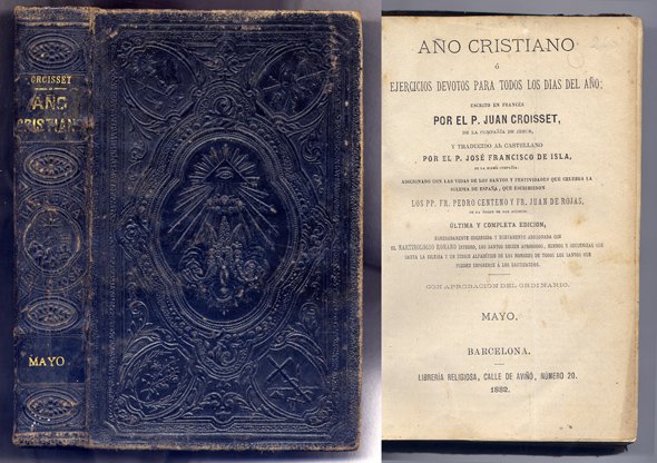 Año Cristiano ó Ejercicios devotos para todos los días del año. Traducido al castellano por el Padre José Francisco de Isla. Adicionado con las vidas de los Santos y festividades que celebra la Iglesia de España y que escribieron los PP. Fr. Pedro Centeno y Fr. Juan de Rojas. Mes de Mayo. | Libri antichi e moderni | Croiset, Jean.