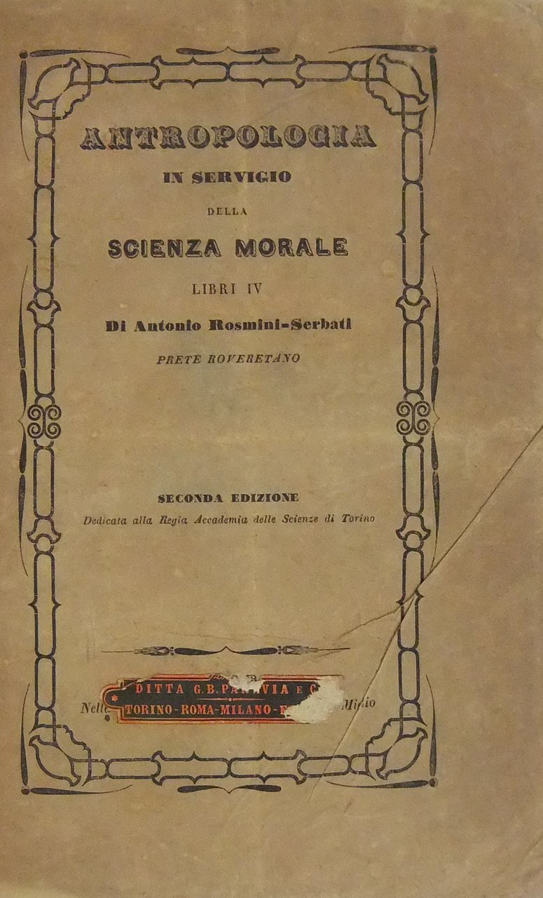 Antropologia in servigio della scienza morale. Libri IV. | Libri antichi e moderni | Rosmini Serbati Antonio